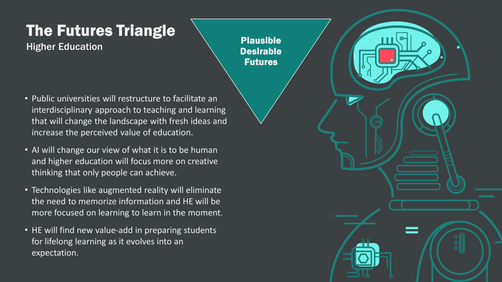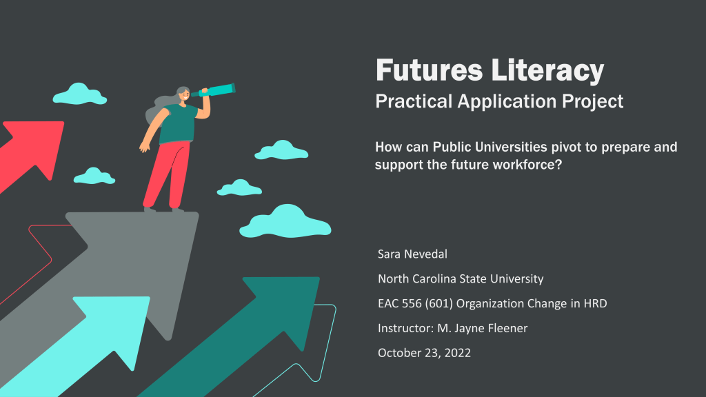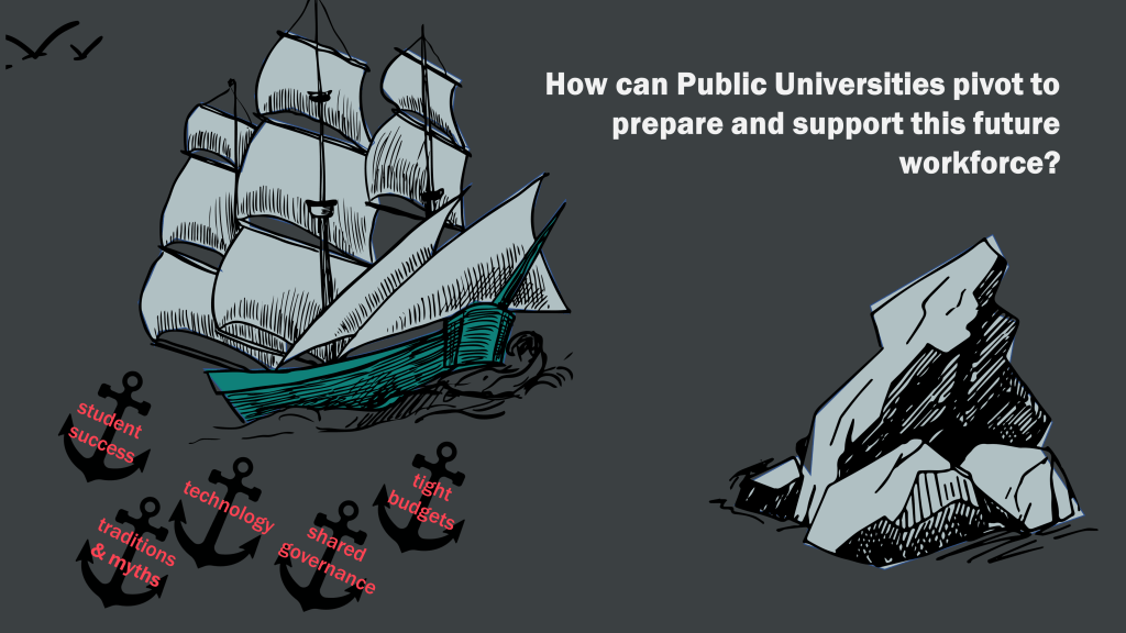 Overview: The presentation explores how public universities can pivot to prepare and support the future workforce. It emphasizes the importance of futures literacy and the ability to gain new knowledge as more valuable than the knowledge itself.